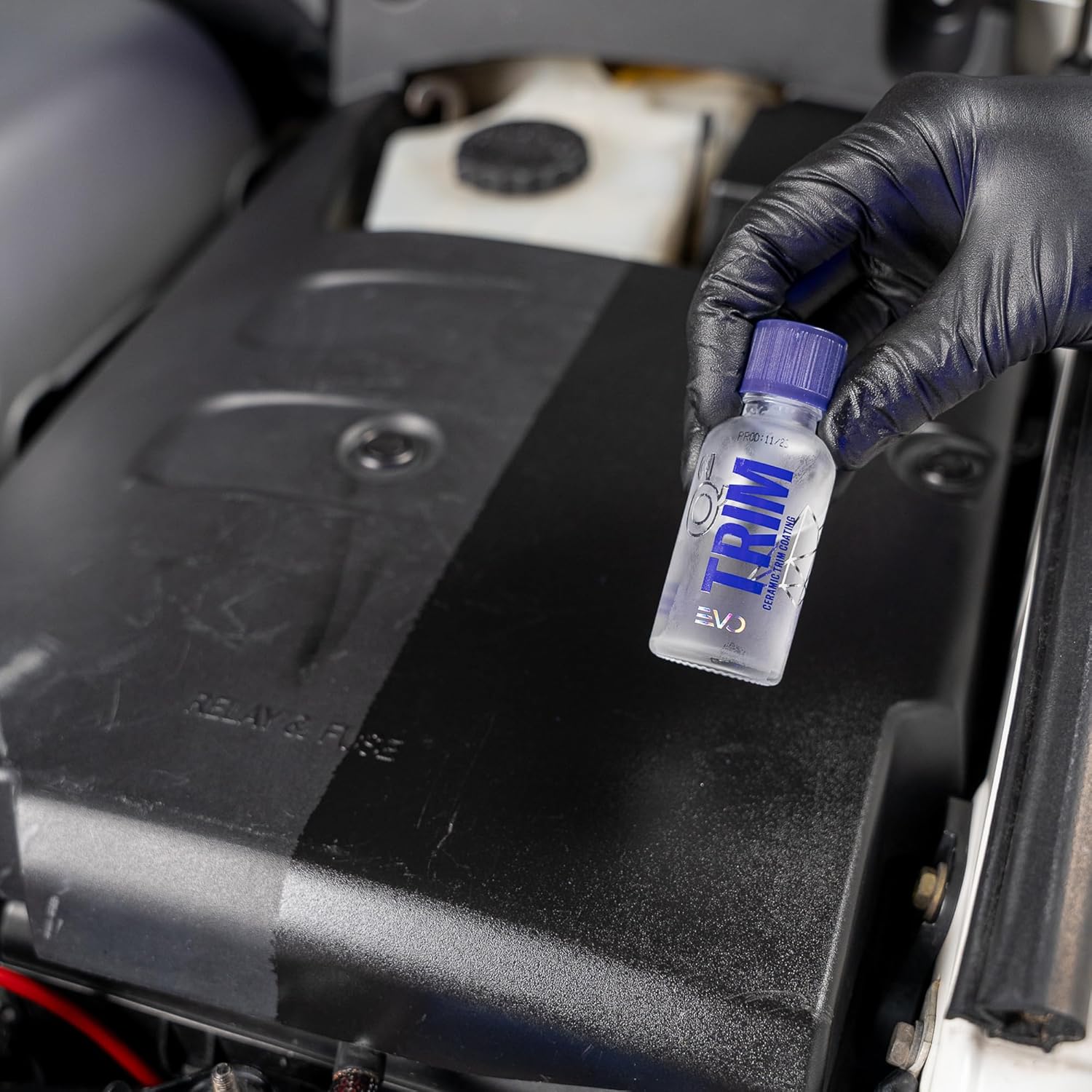 Q² Trim EVO’s formula has been completely revised, resulting in a better self-cleaning and thick protective layer that can be applied to different vehicle parts, such as plastics with their structure, unpainted parts, and clear-coated trim such as tail and headlight covers after they have been renovated. That unique quality is unlikely to be found in other available products.